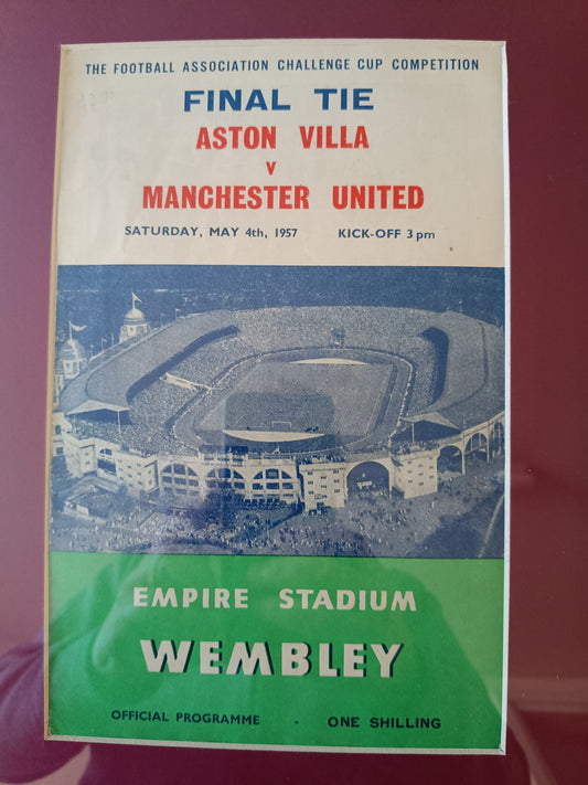 Aston Villa 1957 FA Cup Final arrangement personally signed (3 times) by Peter Mcparland